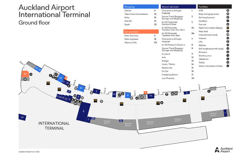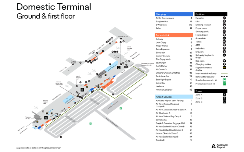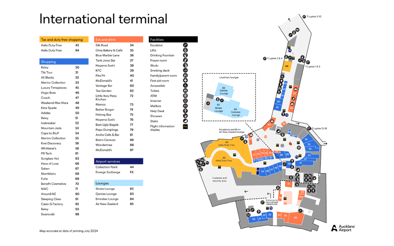 Maps of Auckland Airport shops with facilities and directions are available below for viewing, downloading and printing.